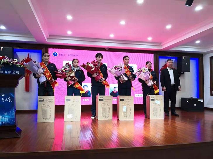 上午8点30分随着yl23411永利官网登录CEO童海标先生及其女儿童彤(主持人)共同开启盛会钥匙而拉开帷幕。随后公司五大部门(经管部、技术部、制造部、品管部、营销部)各负责人先后作了年度工作总结及明年工作规划的汇报。颁发了杨秀刚等十二位工作楷模奖;龙艳付等五位品质守护奖;赵春才等五位特殊贡献奖;郑法根等六位销售精英奖;欧起逢等两位主人翁奖以及突飞猛进奖和卓越团队奖两个集体奖项,个人先进各奖价值1180元飞利浦空气净化器一台,两个团队各奖励现金3000元,以奖励他们在过去的一年中在各自的岗位上所做出的贡献与成绩。