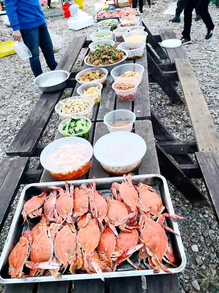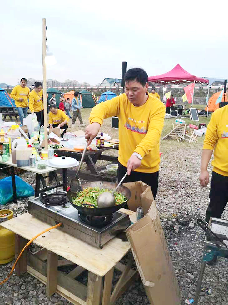 这次活动公司精心选择了美丽的曹娥江边上露营野炊。20日下午两时许,按预先分组设立的友谊队和阳光在各自队长的带领下,载着近一周精心准备的各种活动用品,有吃的,有睡的,有烧的,有玩的满满两大卡车,浩浩荡荡的奔赴活动现场。到了活动现场,大家各自忙碌了开来,有搭帐篷的,有搭灶台的,有洗菜的,有切肉的,大家有说有笑,忙碌开心而又有条不紊的工作着。不到近三小时的工作,大家已把丰盛的晚餐准备就绪,有炖的,有炒的,有煮的,有煎的,色香味俱全,让人看的口水直流。临近五点,准备开饭前,首先由总经理带队的管理委员会成员对两队野炊成果进行了一一品尝一一点评,并给予打分。由于大家事先有精心准备,菜肴厨艺比拼难分高低。开吃啦!吹着曹娥江习习凉风,大家喝着啤酒唱起了豪迈的大河向东流,相与碰杯,欢乐的气氛无语论比。