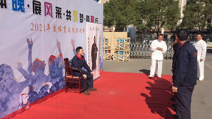 活动伊始,在体育文化节喷绘前铺上了红地毯,放上了传统的红木椅子,按传统礼节徒弟们给师傅敬茶,向师傅鞠躬,行拜师之礼,感谢老师的辛勤指导、无私奉献。这次拜师活动由制造部青年员工学习焊接机器操作、激光切割操作及太极行意拳传承拜师等几项。仪式后,公司总经理勉励青年学员要虚心学习,做一行爱一行,刻苦学习,争取早日学成,走上独立操作岗位,走上专业成长之路,为自己的工作职场打下坚实的基础;也叮嘱师傅们要殷勤教诲,做好“传、帮、带”精神,以匠心之术,薪火相传,也让自己一身技术传承青年员工,无私的胸怀传承你的技能;公司通过这样的活动不断开展与推进,有助于构建和壮大一支更加团结向上,积积进取,开拓创新的青年技术员工团队。