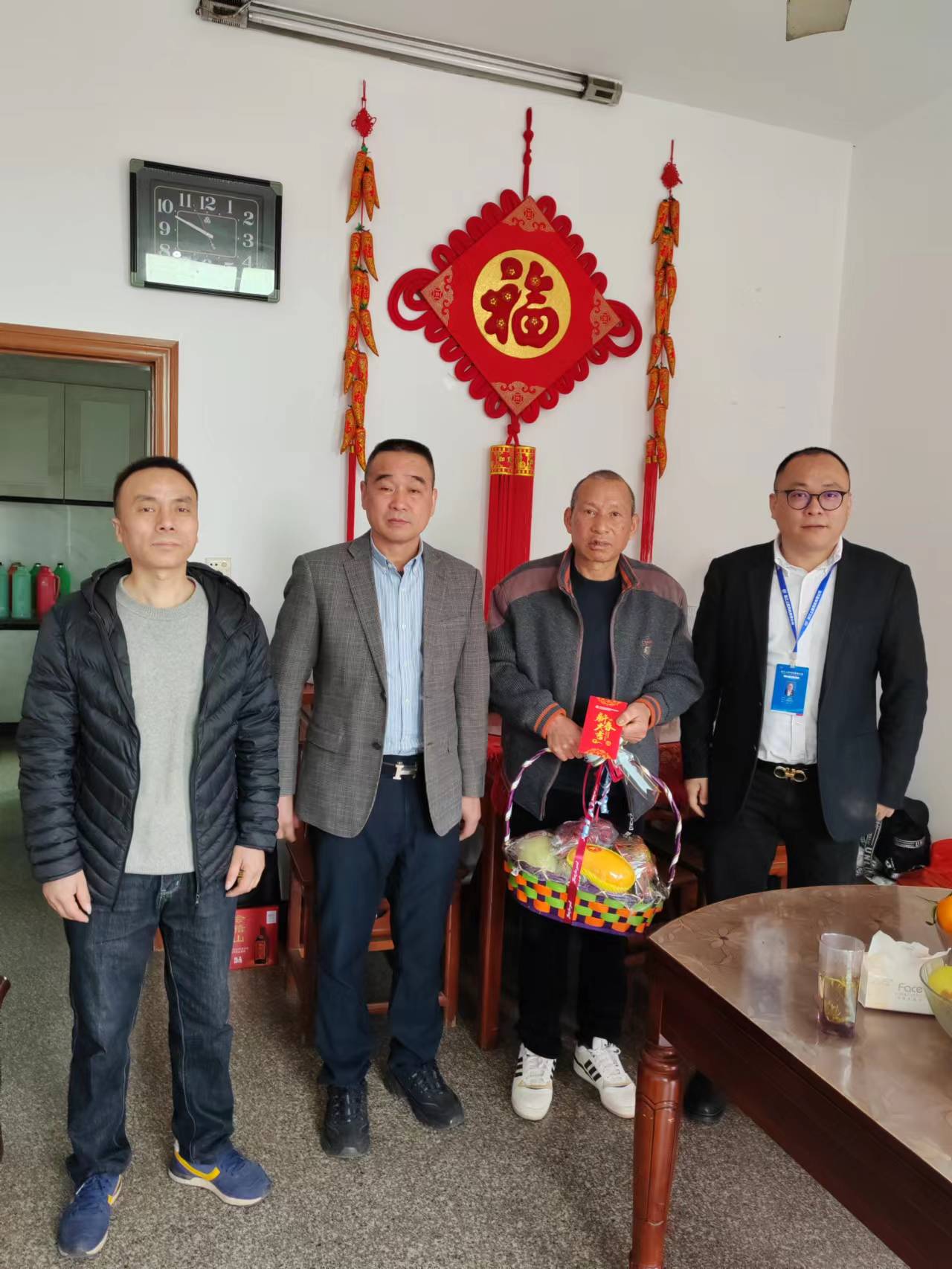 3月31日上午,在公司总经理沈利伟的带领下、公司工会主席贝建波、制造管理部部长赵春才、风阀车间主任叶国林一行驱车前往下管镇看望慰问了车间一线因工负伤的员工梁伯春同志。