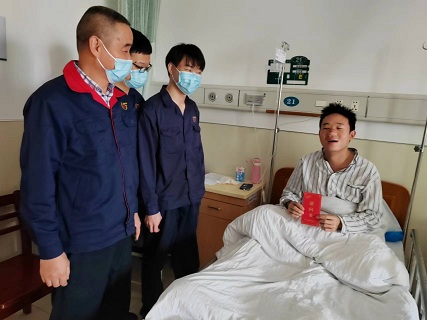 赵总监亲切与王绍基同志交谈,询问其恢复和治疗情况,了解生活上是否困难,鼓励他积极配合医生治疗,保持乐观心态,并为其送去了单位的慰问金,要求车间相关人员要安排好王绍基同志住院期间的保障工作,确保其安心养病,早日康复。亲切的话语让王绍基深刻感受到单位的关爱,王绍基对单位的牵挂和慰问表示由衷的感谢。