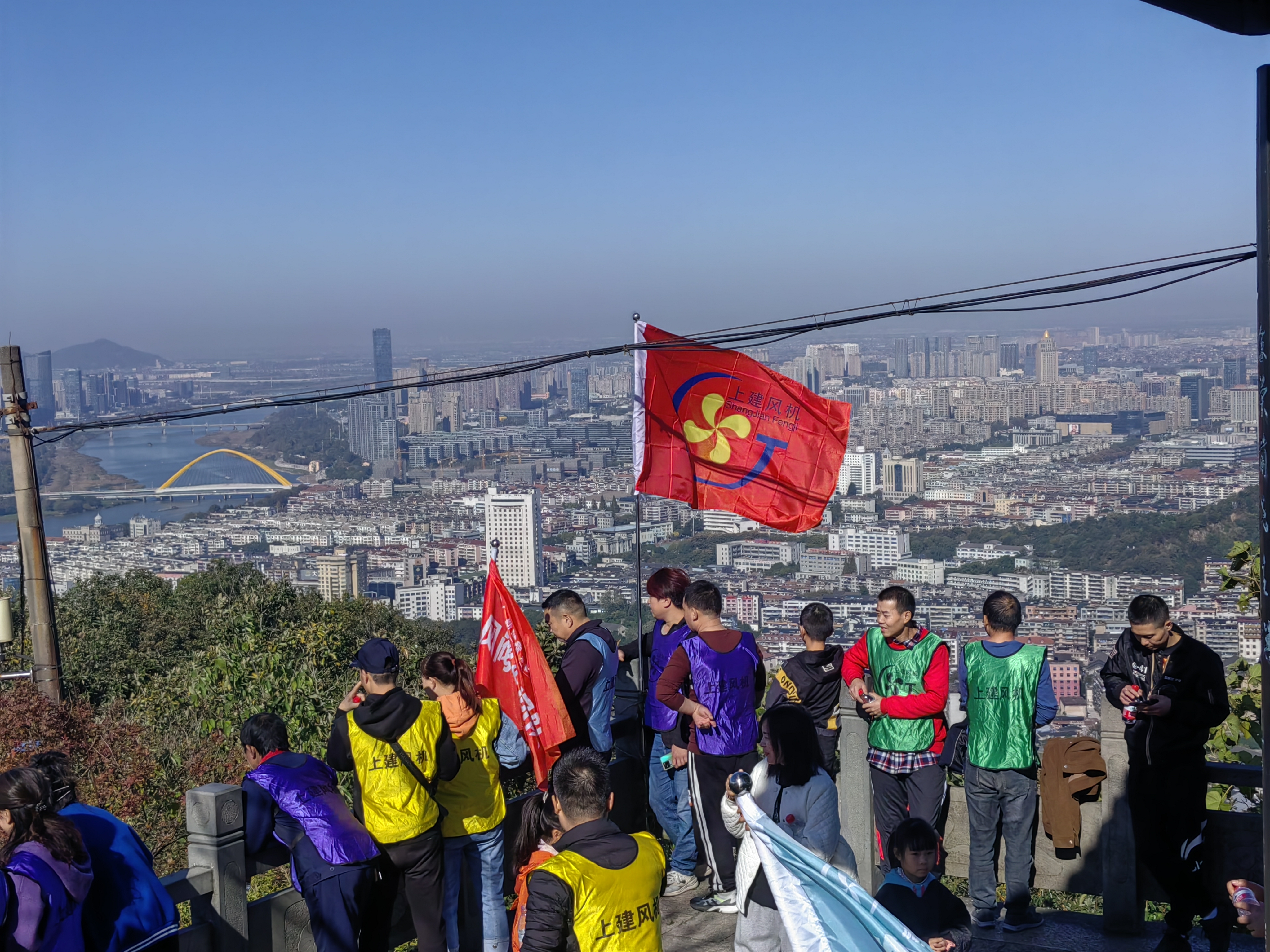 本次活动所有员工都登上了龙山之巅。站在电视塔下,俯瞰着上虞城区,看着日新月异的大上虞不少同事都感慨万千。